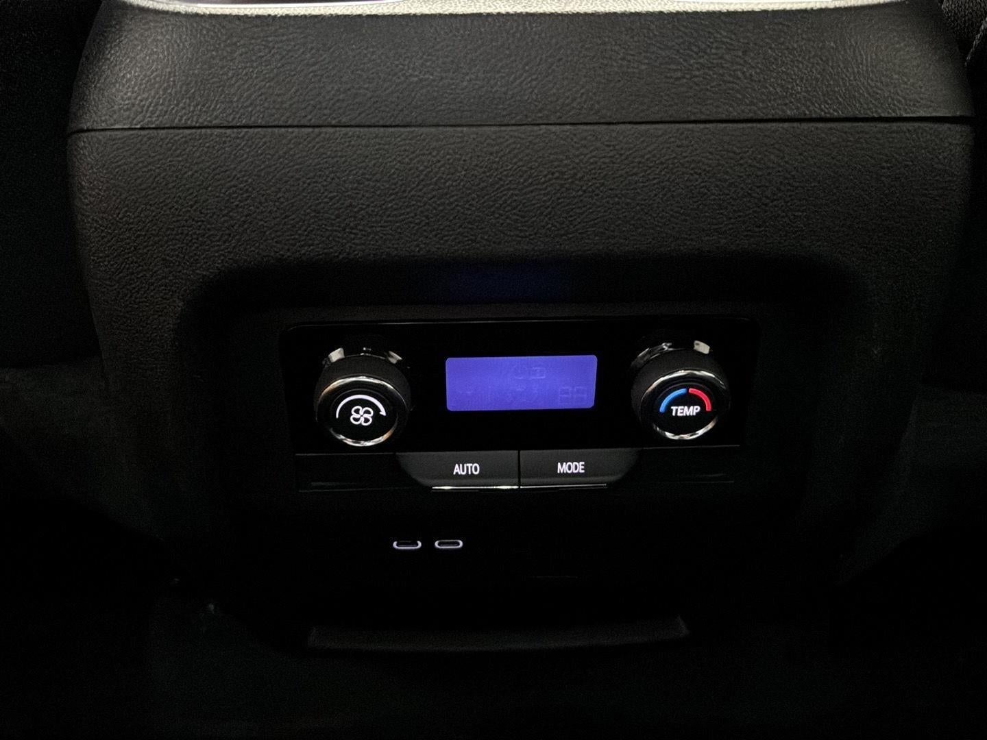 - Auxiliary controls in the rear of the cabin include air delivery mode and temperature up/down settings