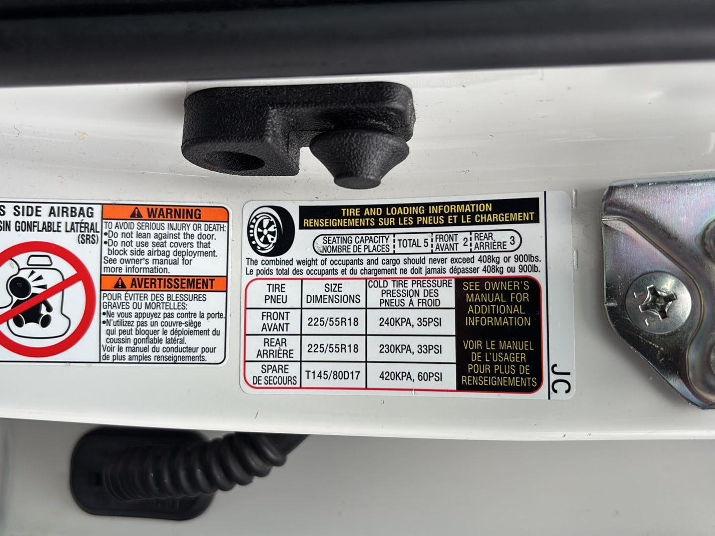 - Tires: P225/55R18 98H All-Season