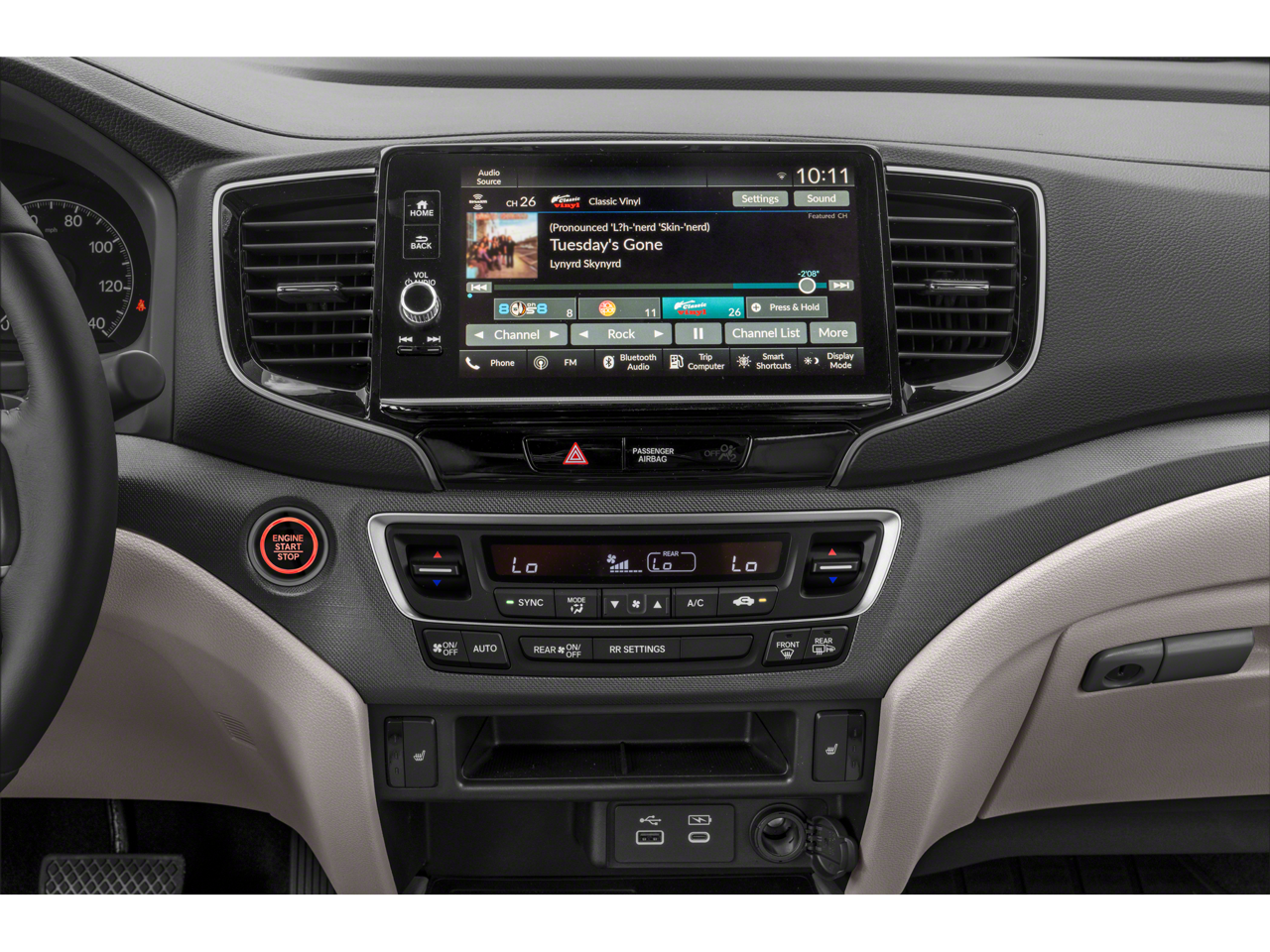 - Radio: 215-Watt Audio System w/7 Speakers -inc: subwoofer, 9" color touchscreen, Bluetooth® streaming audio, Speed-Sensitive Volume Compensation (SVC), wireless Apple CarPlay/Android Auto compatibility, 2.5A USB-A data port in front console and HondaLink