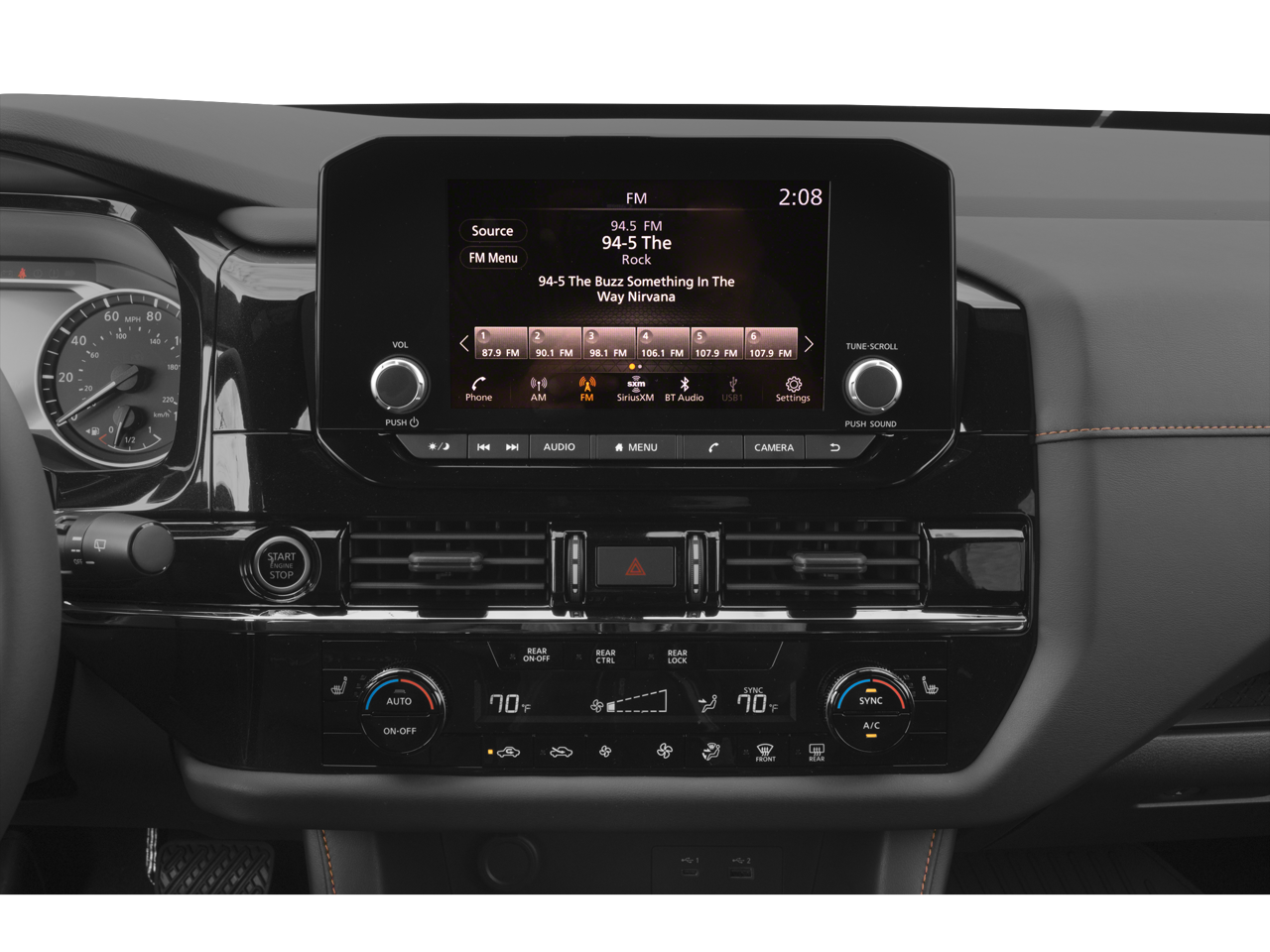 - Radio: AM/FM Audio System w/NissanConnect -inc: 6 speakers, Radio Data System (RDS), Apple CarPlay and Android Auto, 8" color display w/multi-touch control, SiriusXM satellite radio w/advanced audio features, 2 illuminated front USB connection ports (1 type A, 1 type C) for iPod interface and other compatible devices, Bluetooth® hands-free phone system and streaming audio, Speed-Sensitive Volume control (SSV), hands-free text messaging assistant and Siri Eyes-Free/Google Assistant voice recognition